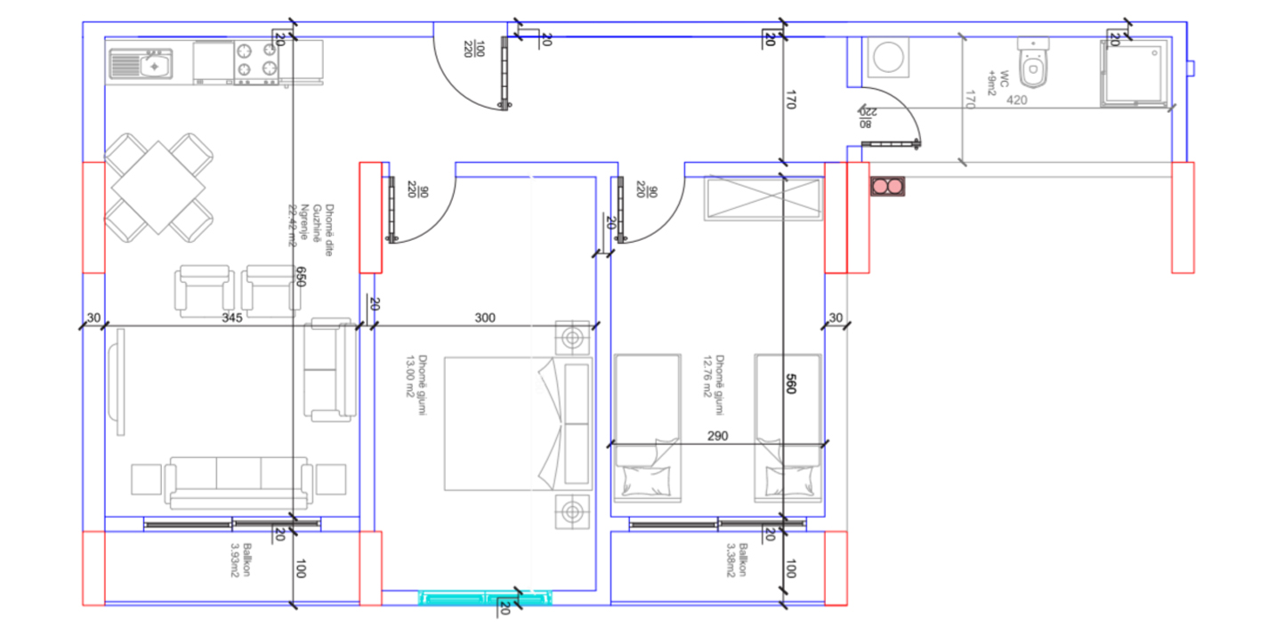 HYRJA C, KATI 7, BANESA 155, 89,60 m2, Dhomë e ditës, Tryezaria, Kuzhina, 2 Dhoma gjumi, Banjo, Koridor, 2 Ballkona.