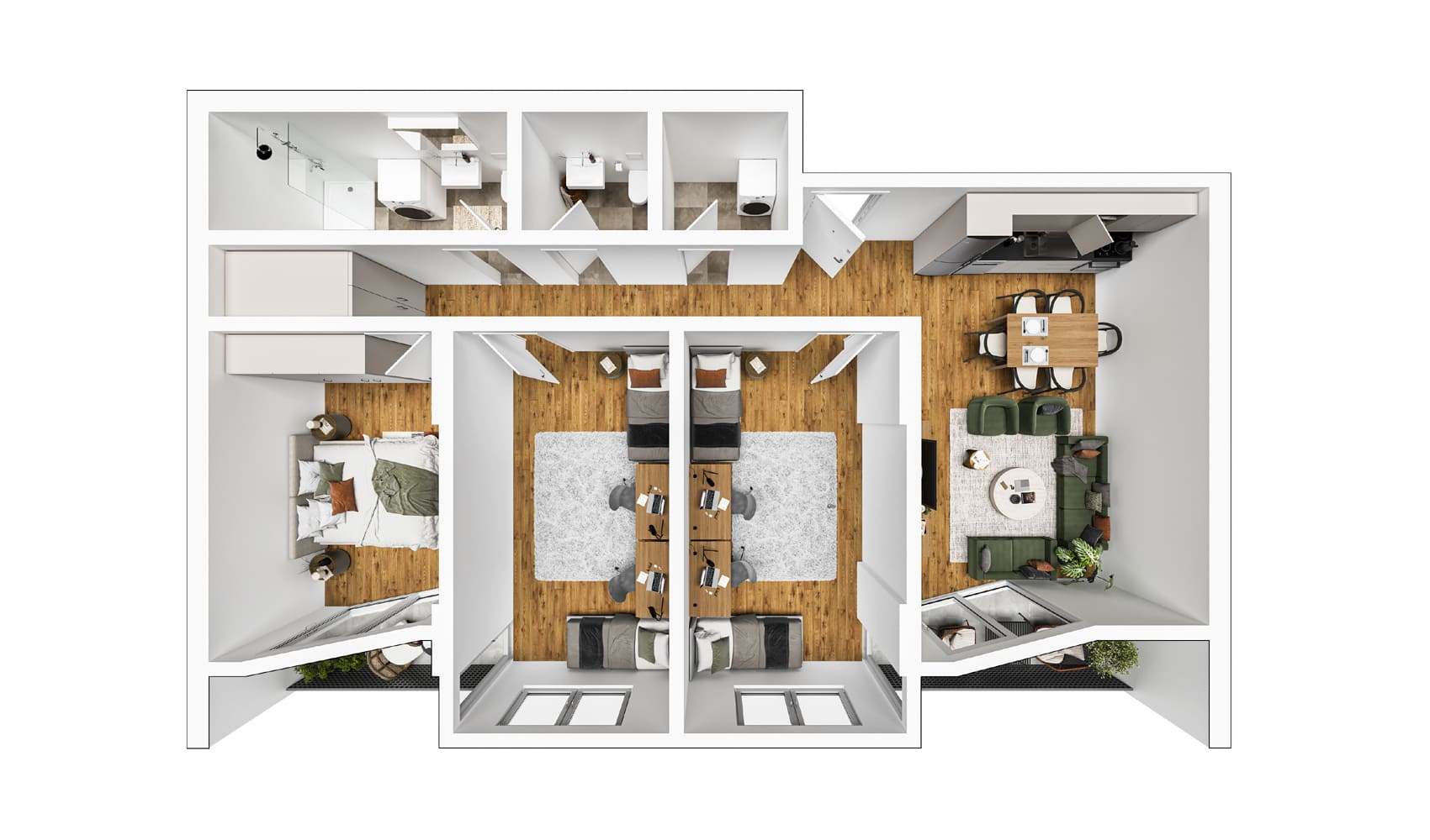 BLLOKU I RI C, HYRJA 3, KATI 3, BANESA 236, 124 m2, Dhomë e ditës, Tryezaria, Kuzhina, 3 Dhoma gjumi, Banjo, Koridor, 2 Ballkone, 1 Depo.