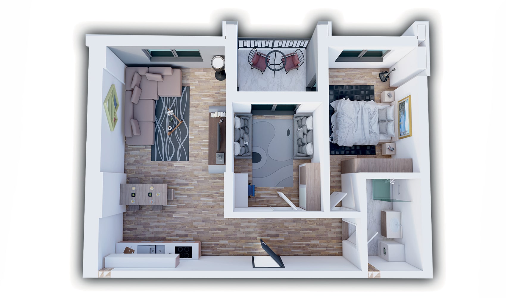 BLLOKU B, HYRJA 2, KATI 3, BANESA 382, 88.85 m2, Dhomë e ditës, Tryezaria, Kuzhina, 2 Dhoma gjumi, Banjo, Koridor, Ballkon.