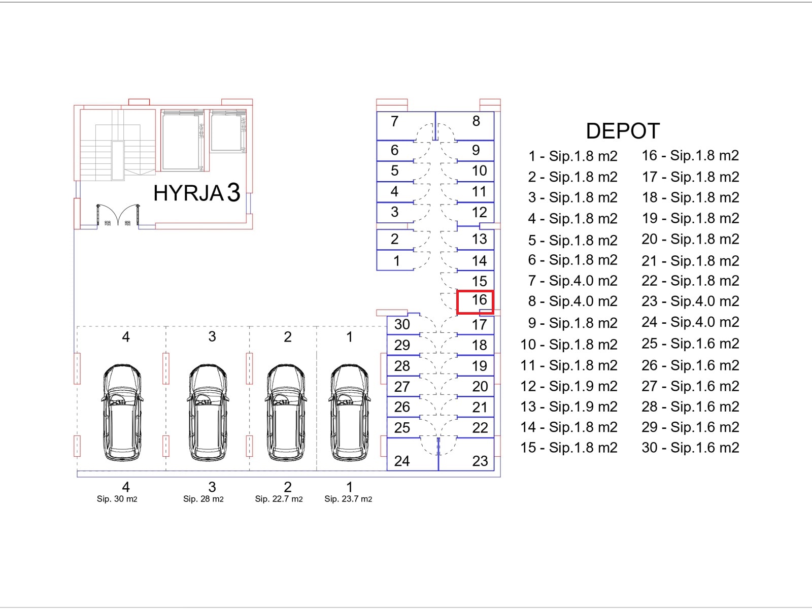 BLLOKU I RI “C” HYRJA 3, KATI -1, DEPO 16, 1.8 m2.