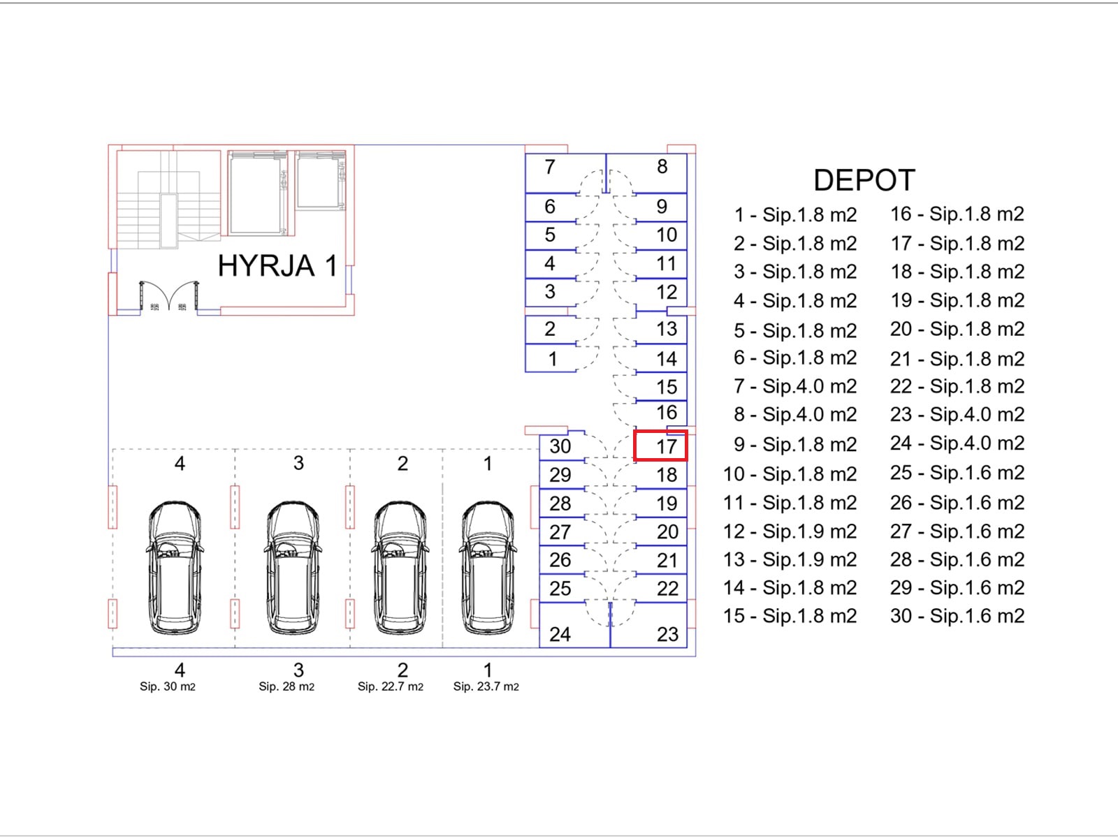 BLLOKU I RI “C” HYRJA 1, KATI -1, DEPO 17, 1.8 m2.