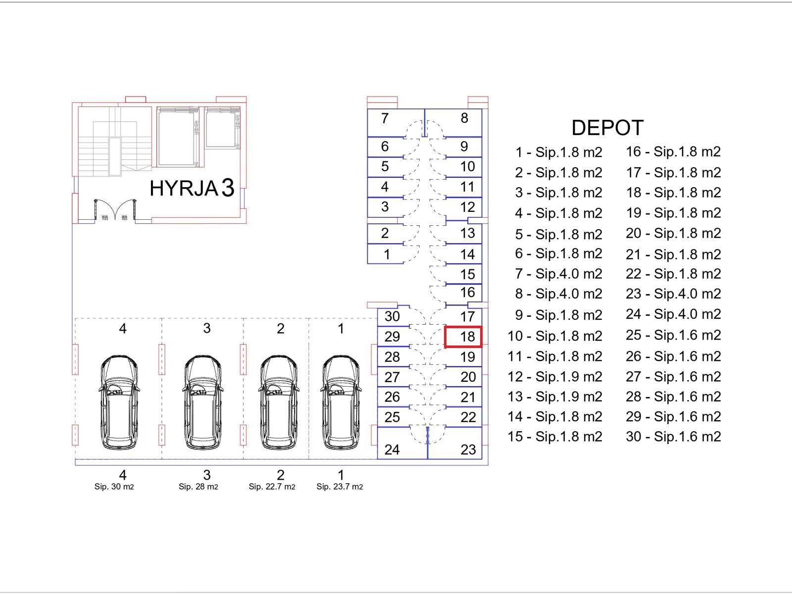 BLLOKU I RI “C” HYRJA 3, KATI -1, DEPO 18, 1.8 m2.