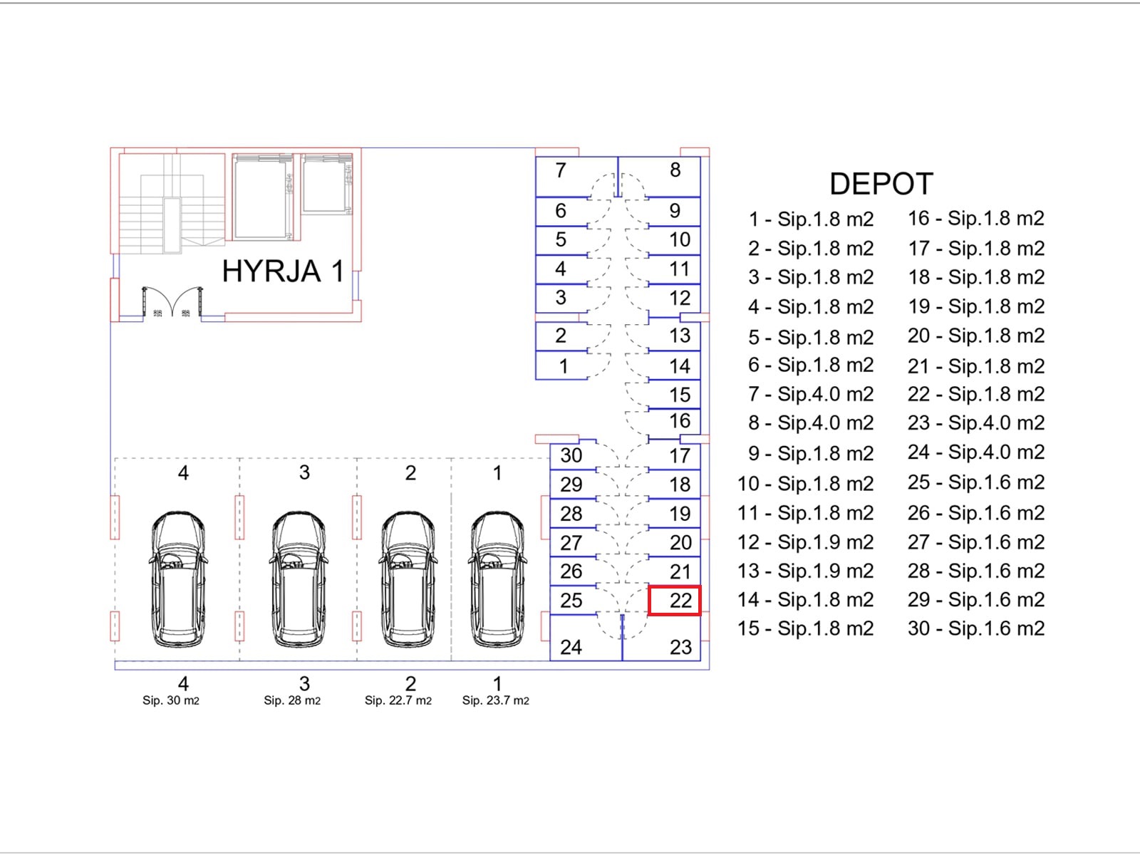 BLLOKU I RI “C” HYRJA 1, KATI -1, DEPO 22, 1.8 m2.