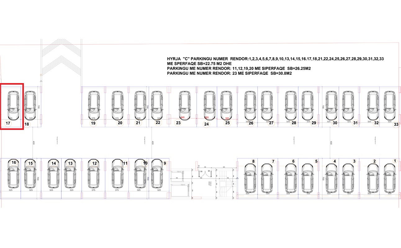 BLLOKU HYRJA C, KATI -1, PARKINGU 17, 22.75 m2.