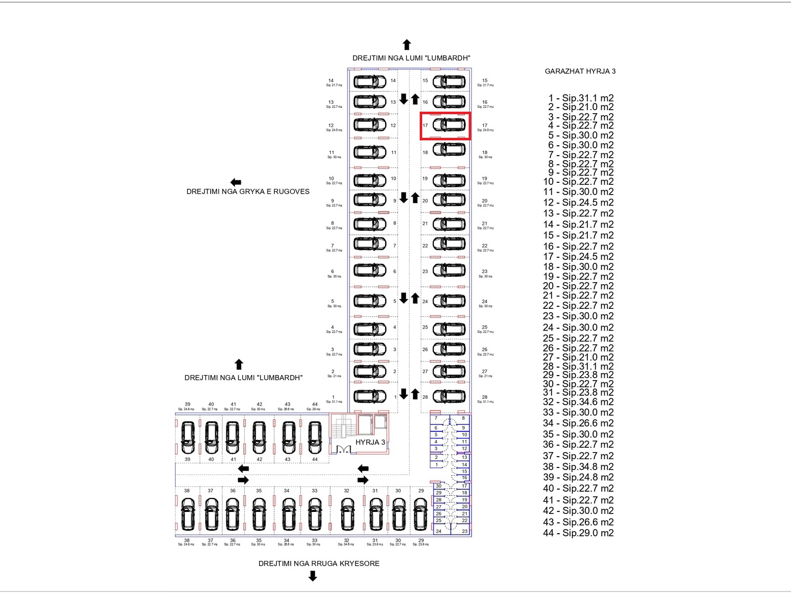 BLLOKU I RI “C” HYRJA 3, KATI -1, PARKINGU 17, 24.5 m2.