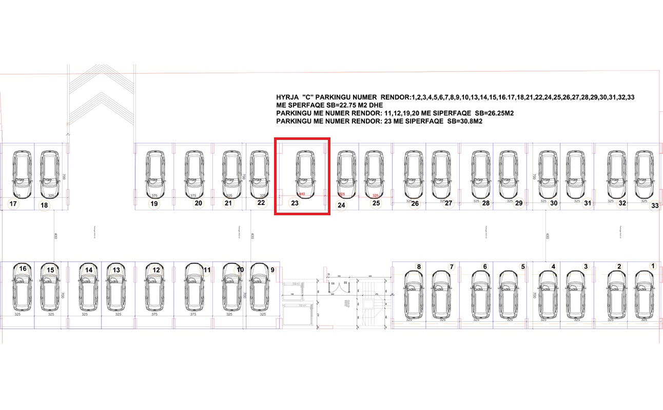 BLLOKU HYRJA C, KATI -1, PARKINGU 23, 30.8 m2.