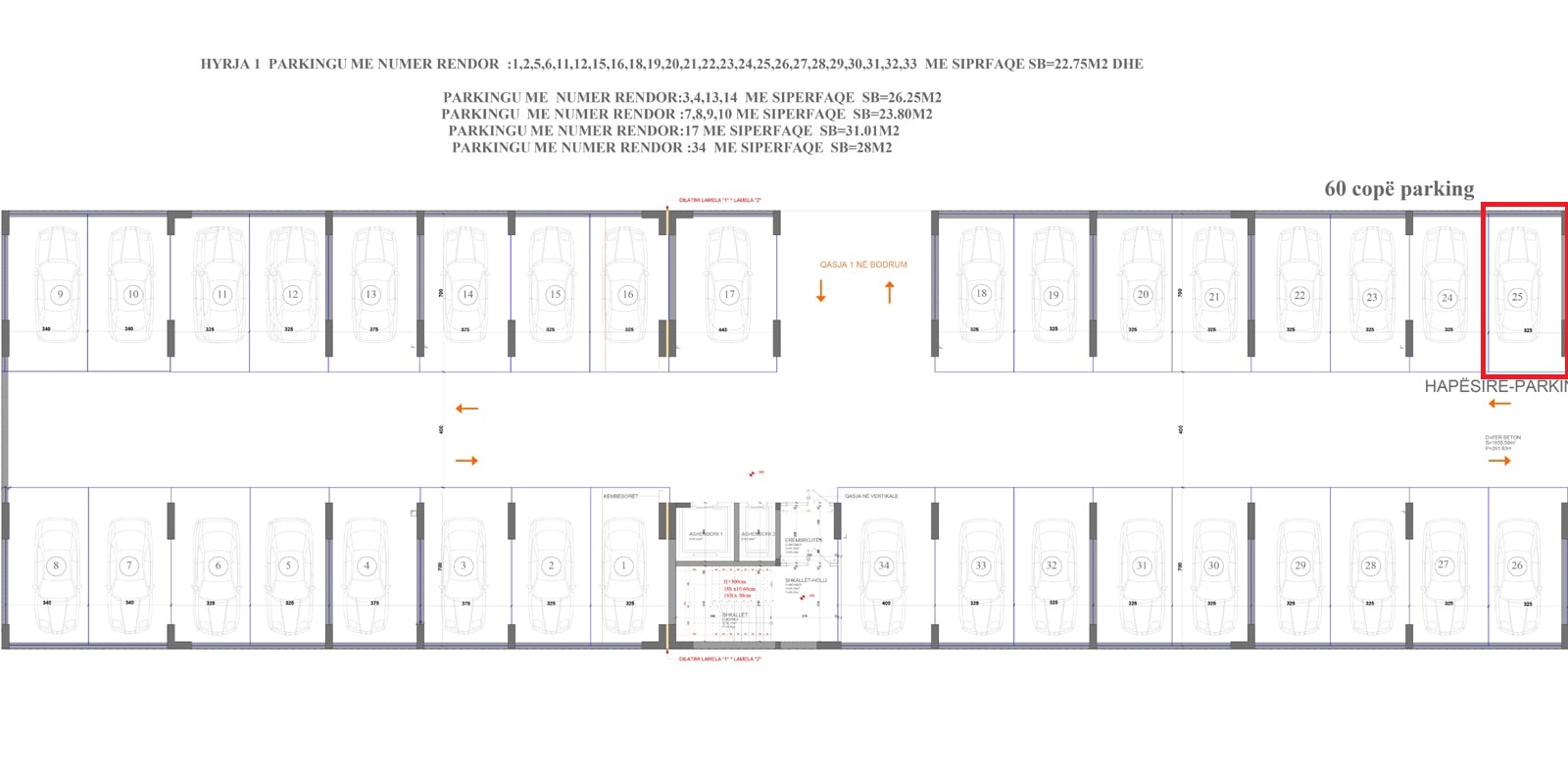 BLLOKU B, HYRJA 1, KATI -1, PARKINGU 25, 22.75 m2.