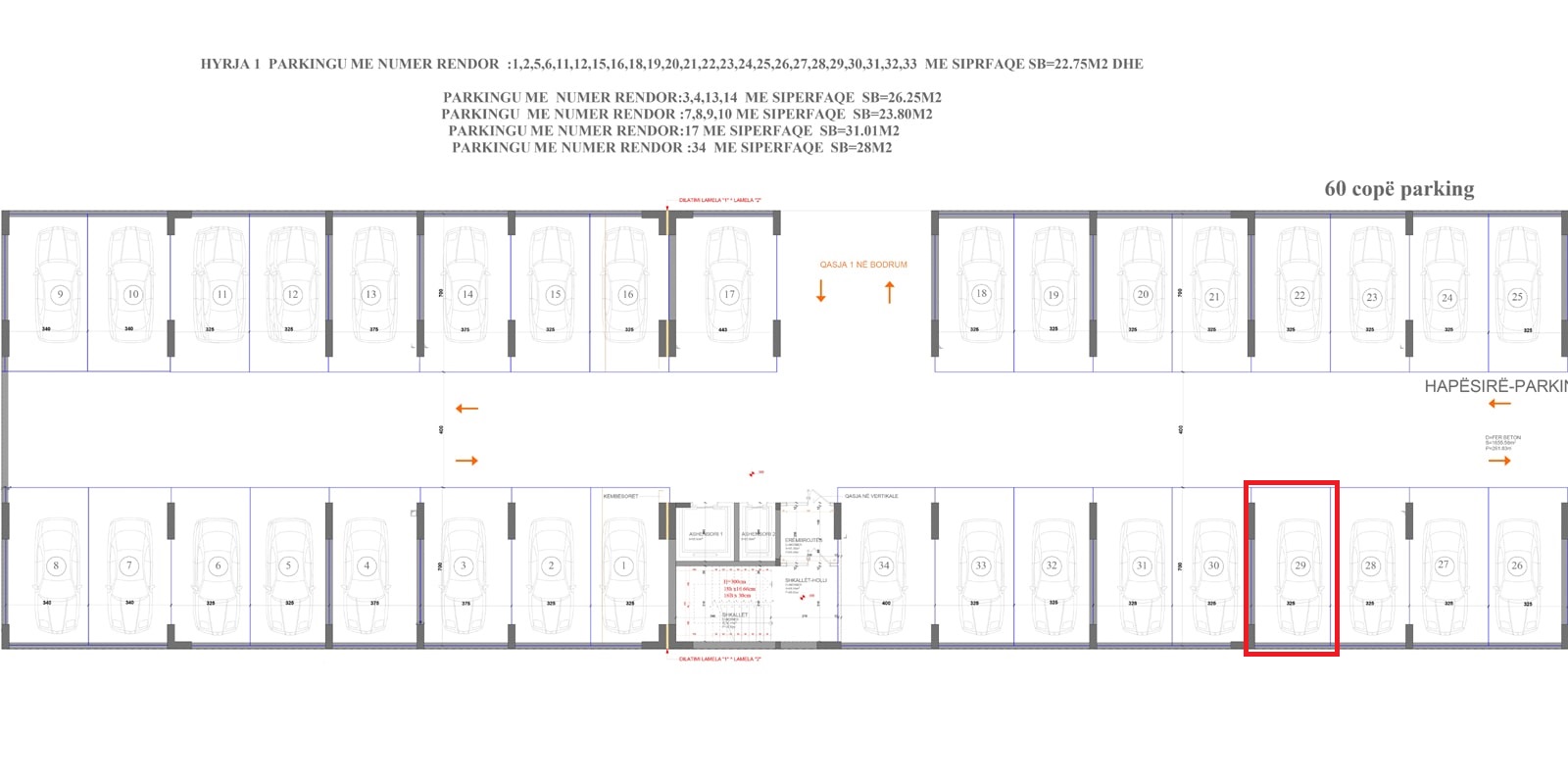 BLLOKU B, HYRJA 1, KATI -1, PARKINGU 29, 22.75 m2.