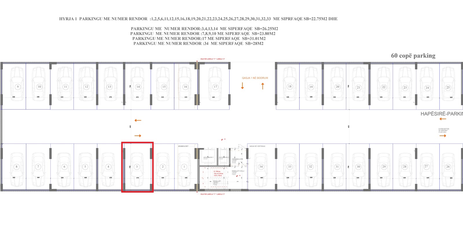 BLLOKU B, HYRJA 1, KATI -1, PARKINGU 3, 26.25 m2.